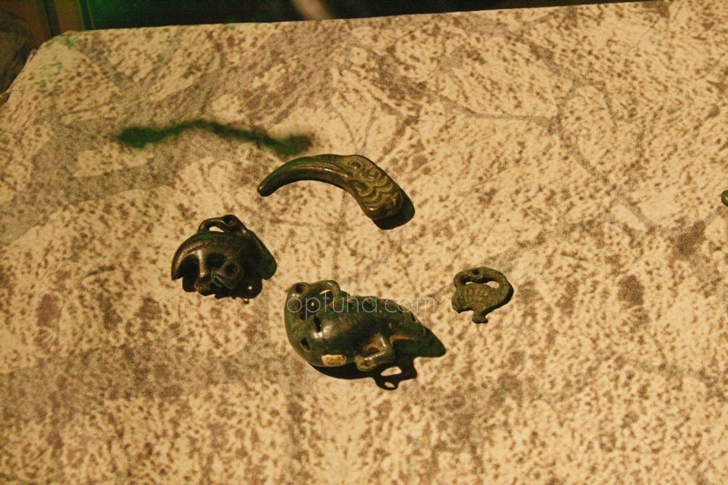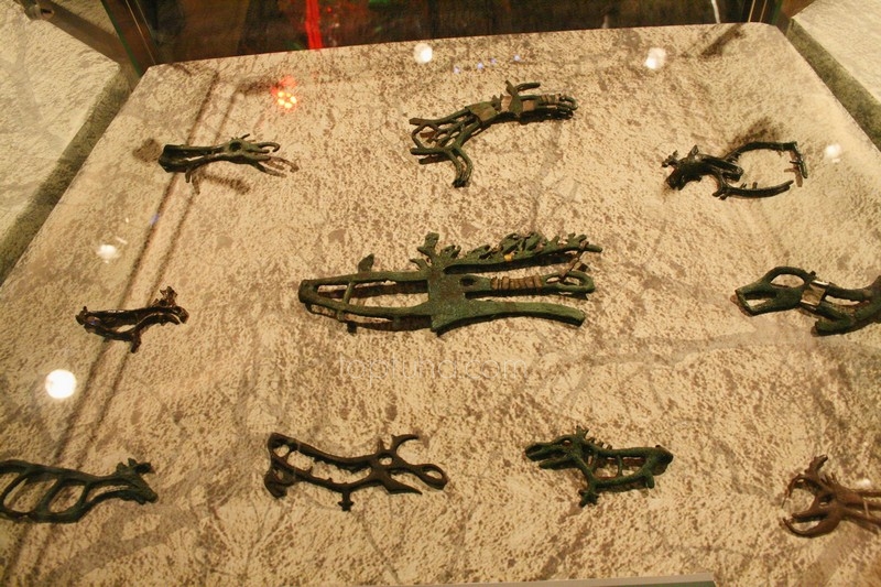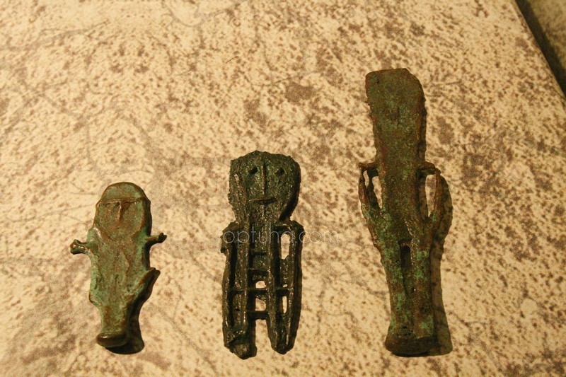 Здесь пронизи, накладки, браслет, бузины, украшения. Самым уникальным для Кулайской культуры было бронзолитейное дело. Известно, что фигурки, как правило, после отлива не обрабатывались, особенно сакральные фигурки, дабы не разозлить богов. Как есть, так и есть. Ничего менять и поправлять нельзя.