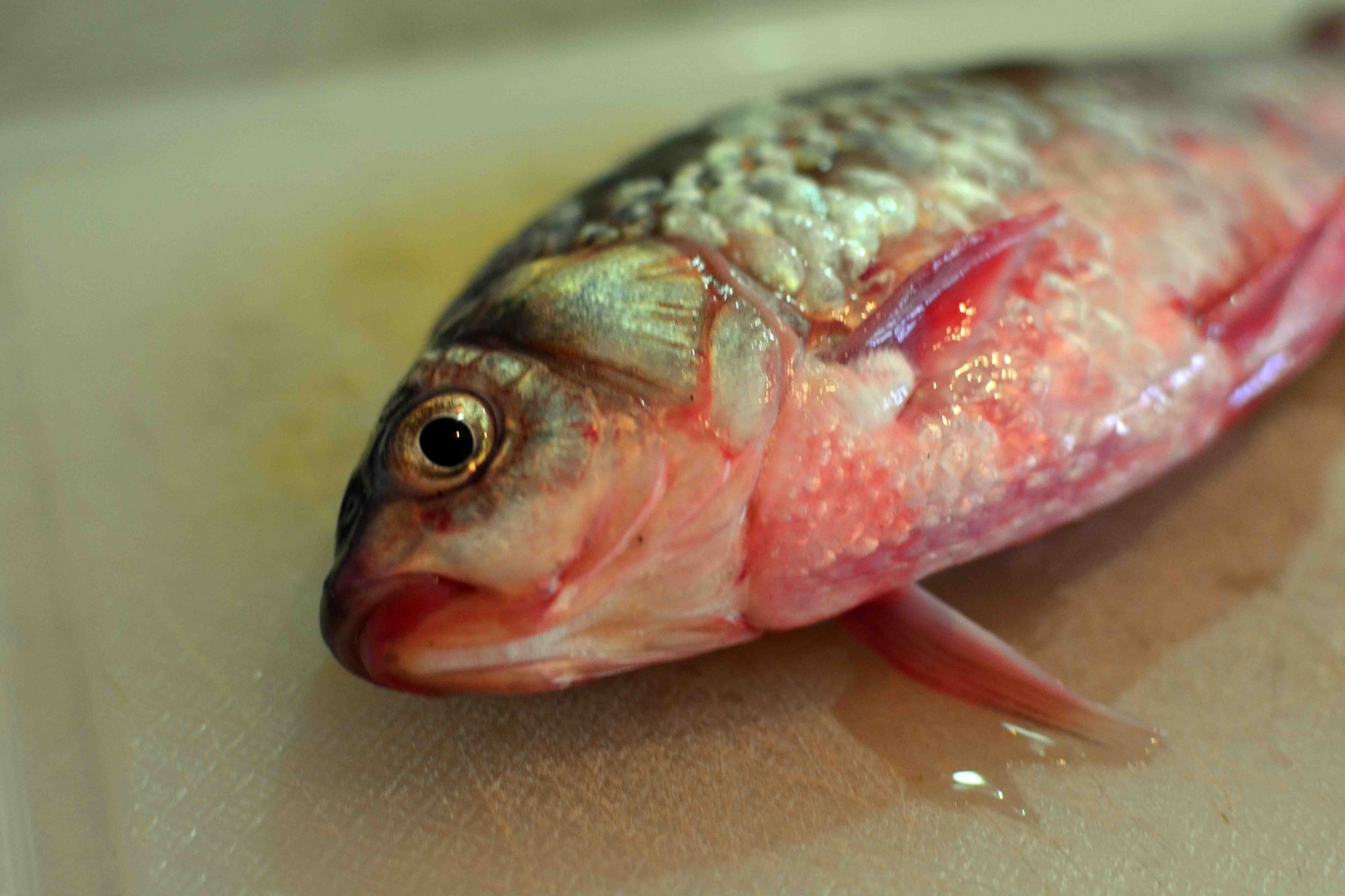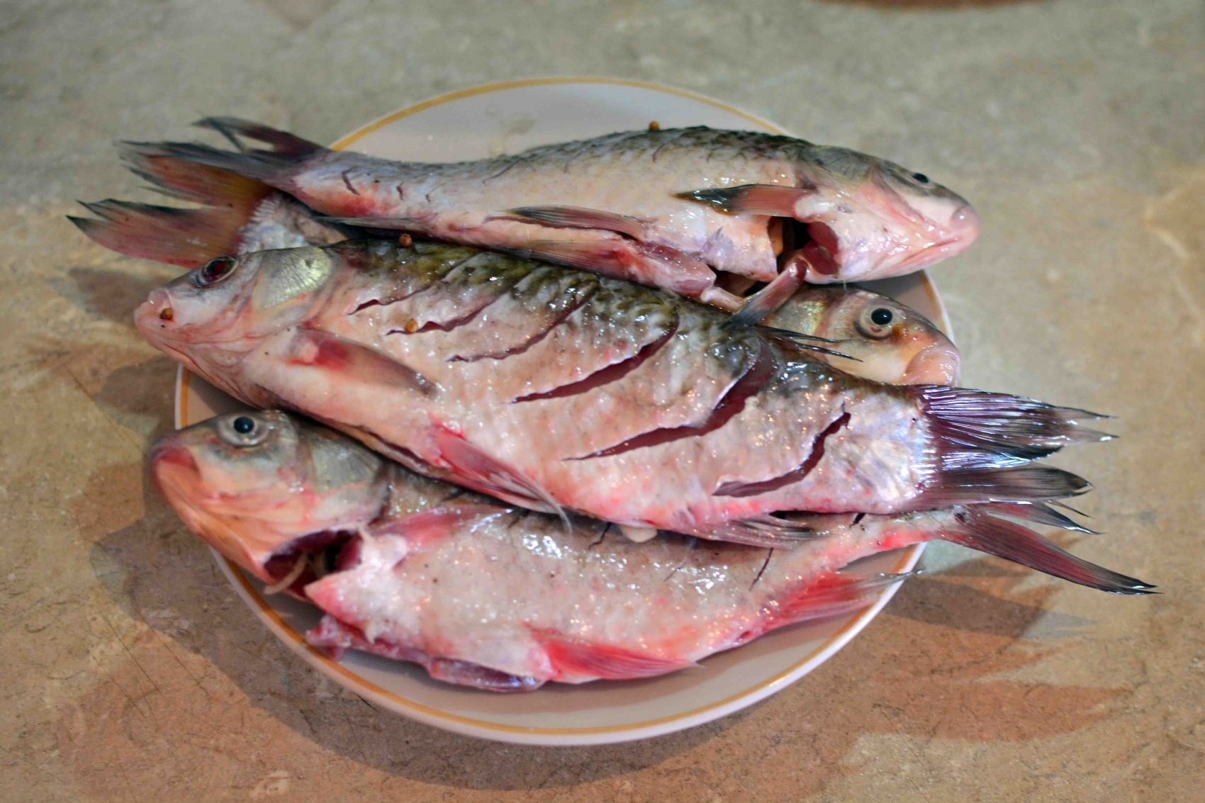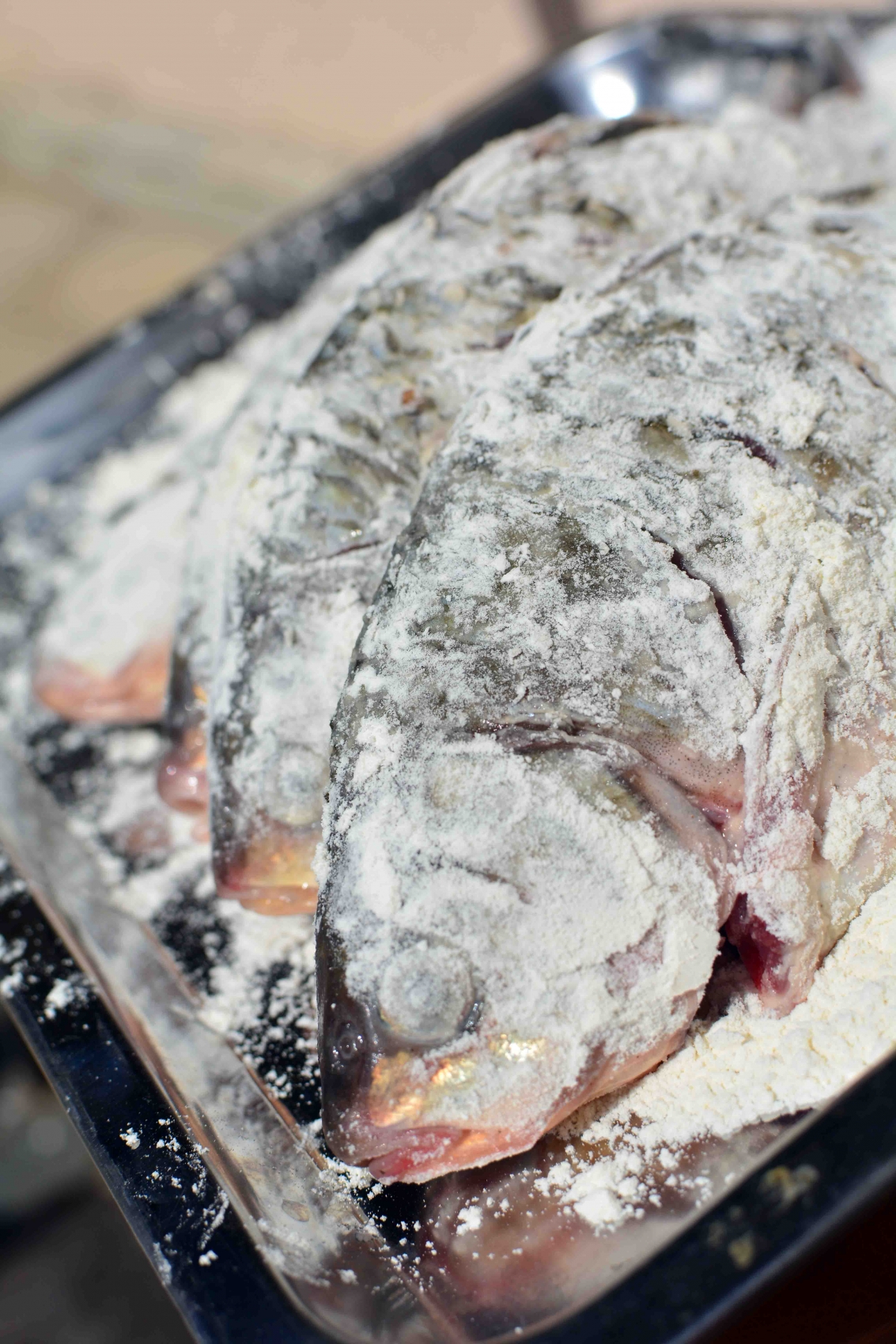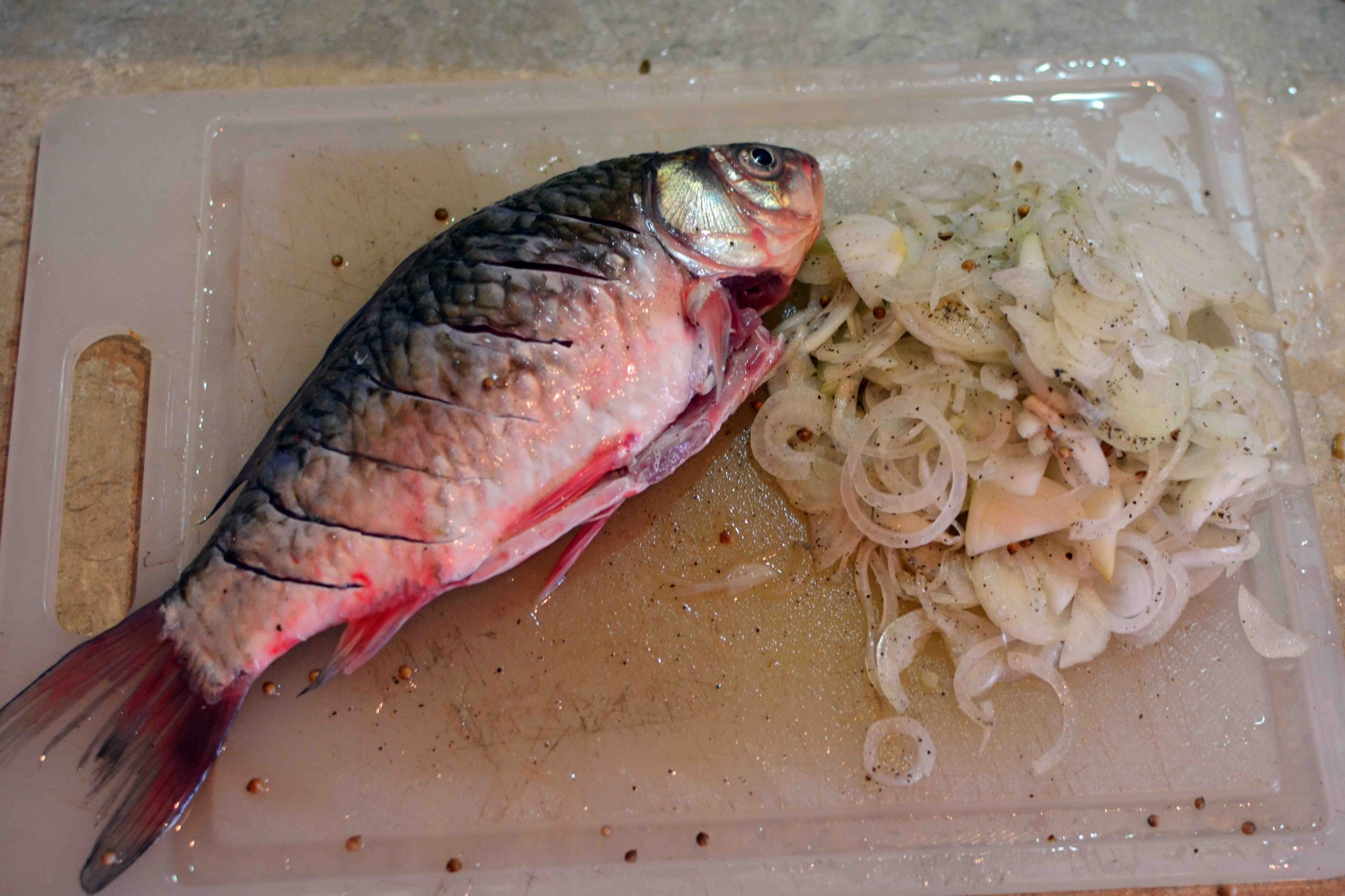 Карасей чистим, потрошим и хорошенько промываем. Стараемся удалить черную пленку изнутри. Насколько я понел эта пленка оберегает нежные несьедобные рыбьи внутренности от солнечного света, но это только предположение.