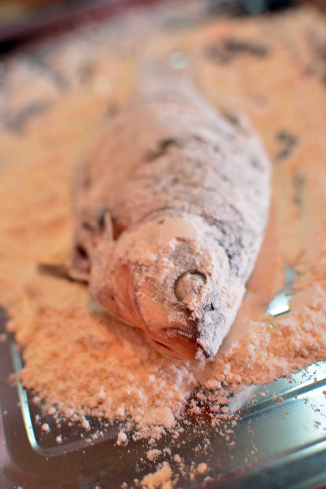 и аккуратно обваливаем в нем рыбу со всех сторон.