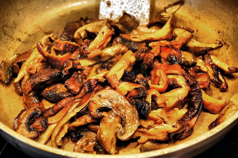 раскаляем до дыма пару ложек кунжутного и ложки 3 хорошего оливкового масла, выливаем на чеснок и специи