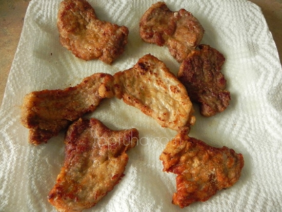Один из немногих рецептов, где мясо вобще безо всякого соуса, так сказать, "сухое, как лист".
