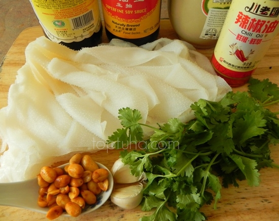 Берем кусок желудка с листьями, пару зубов чеснока, кинзу, чилимасло, рисовое вино, соевый соус, черный уксус, сахар, пару ст.л. жареного арахиса
