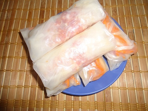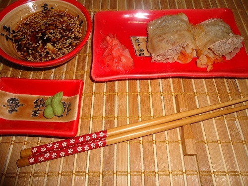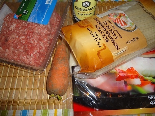 драствуйте. Предлагаю вашему вниманию откушать немы. исходный материал для творчества: фарш свиной, листы рисовой бумаги, лапша рисовая, морква, соевый.